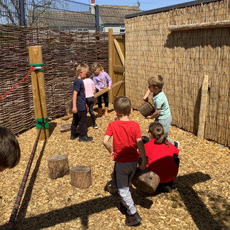 Year 1 enjoyed some great weather throughout their Busy Badger sessions. They showed great teamwork when creating an obstacle course and explored the mud kitchen materials and tools when making potions. We then used some of these materials to create patterns in clay.